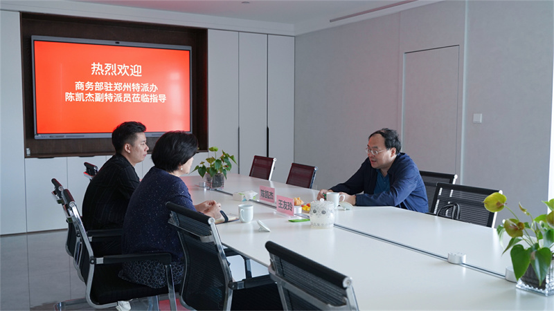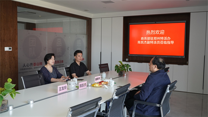 商務(wù)部駐鄭州特派員辦事處副特派員陳凱杰蒞臨天天公司調(diào)研指導